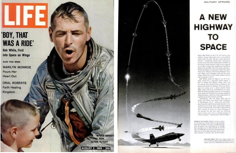 La revista Life sacó un reportaje el 3 de agosto de 1962, en el que el piloto Robert White contaba su experiencia de volar a una gran velocidad y altura con el avión X-15, incluyendo los extraños avistamientos de objetos desconocidos que tienen lugar en esas condiciones.Según el testimonio posterior de Robert White, uno de los ovnis, de color gris, se acercó al avión, y se mantuvo acompañando por un tiempo al X-15, prácticamente pegado, para después salir disparado y desaparecer de la visión.